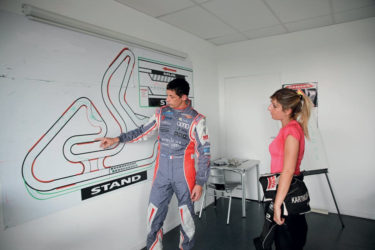 Les 35 degrés promis ce jour-là par Météo France se sentent. « C’est plutôt un temps à se faire bronzer à Beaune Côté Plage », glisse Laëtitia. Ce sera pour plus tard. Car voici Philippe Gaillard dans les stands du Karting de Prenois. « Ce coup-là, la piste est sèche ; je te propose de faire une première session afin de « poser » un temps. On saura comment te positionner. En sport auto, on ne peut pas tricher devant le chrono… » Voilà qui est dit. La pression monte… Laëtitia n’est plus tout à fait débutante et se libère tour après tour. Fin de session. François, le responsable du circuit, la félicite sans faux-semblant : « Vraiment pas mal : 1 minute, 4 secondes et 143 millièmes… Loin d’être ridicule. Bravo ! » Philippe, qui en a profité pour faire un temps de référence en moins d’une minute, embraye : « C’est vraiment bien. »