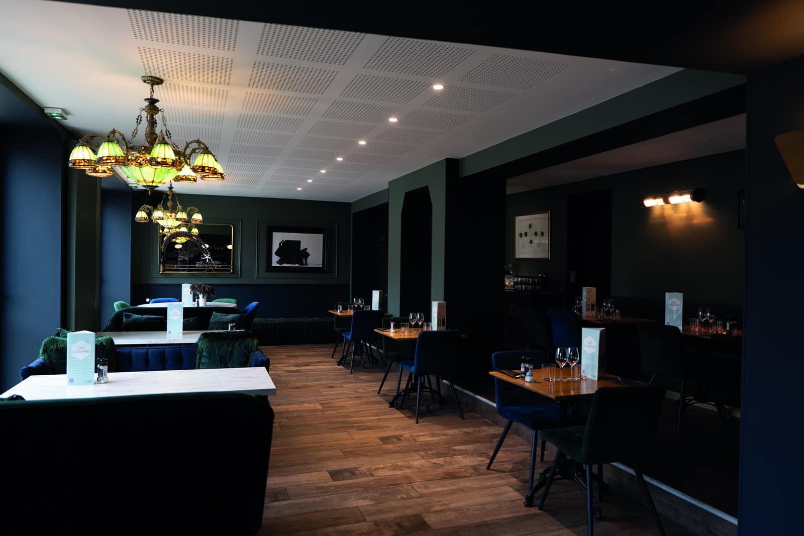 Le patron a pensé la décoration avec le plus grand soin : des murs aux teintes gris vert originales, des lustres et des banquettes que vous ne verrez nulle part ailleurs, une atmosphère chaleureuse. Ce n’est pas pour rien que le Café gourmand, apprécié aussi bien par les Dijonnais que par les touristes, s’est imposé au fil des années comme une adresse accueillant aussi bien un déjeuner d’affaires qu’un dîner en amoureux. Une véritable institution, même si Guillaume Bortolussi hésite à employer le mot.