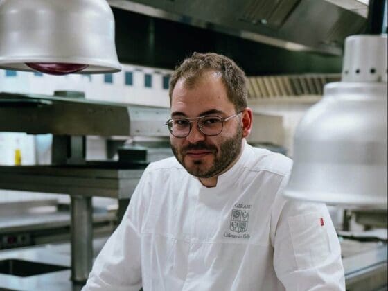 Au rez-de-chaussée du bâtiment principal, le restaurant a aussi connu un petit lifting et offre une vue directe sur les cuisines. Dans ces dernières, Yann Zwysig fait régner un calme étonnant. Loin du cliché des chefs criards et insatiables de certains étoilés, le jeune cuisinier semble avoir trouvé la combinaison parfaite entre exigence et bienveillance. Des qualités qu’il a apprises très jeune auprès du triplement étoilé Frédéric Anton. Il évoque sa vision de la cuisine forgée au gré de ses différents passages sous les étoiles, mais aussi de ses voyages aux quatre coins du monde. À présent posé au Relais de la Source, il propose une cuisine gastronomique ancrée dans le terroir, « qui a pour ambition de mettre en avant les produits de saison et les producteurs locaux. Une cuisine en harmonie avec le lieu et son écosystème. » Œufs en meurette, bœuf charolais, escargots, brochet… Les goûts de la Bourgogne sont parfaitement retranscrits dans des assiettes subtiles et gourmandes. Accompagné par la talentueuse cheffe pâtissière Cannelle Lefebvre, Yann compte bien accrocher d’ici deux ans une première étoile au guide Michelin.